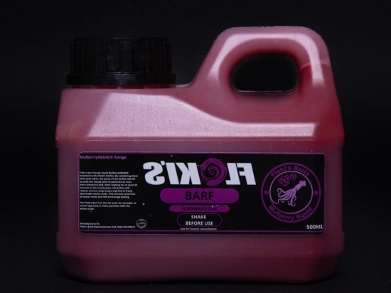 Floki’s barf de cloudy liqiud mulberry squid sluit perfect aan op de mulberry squid boilie van floki’s.
