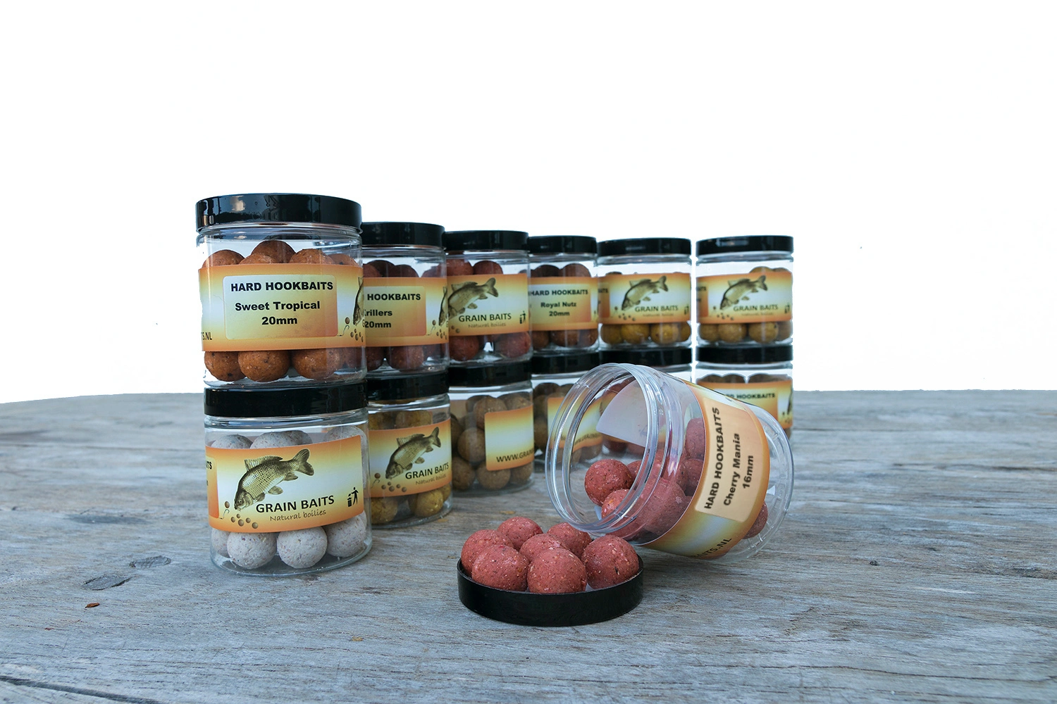 In ons assortiment hebben we uiteraard ook hard hookbaits opgenomen, deze zijn in vergelijking met de normale boilies een stuk harder.