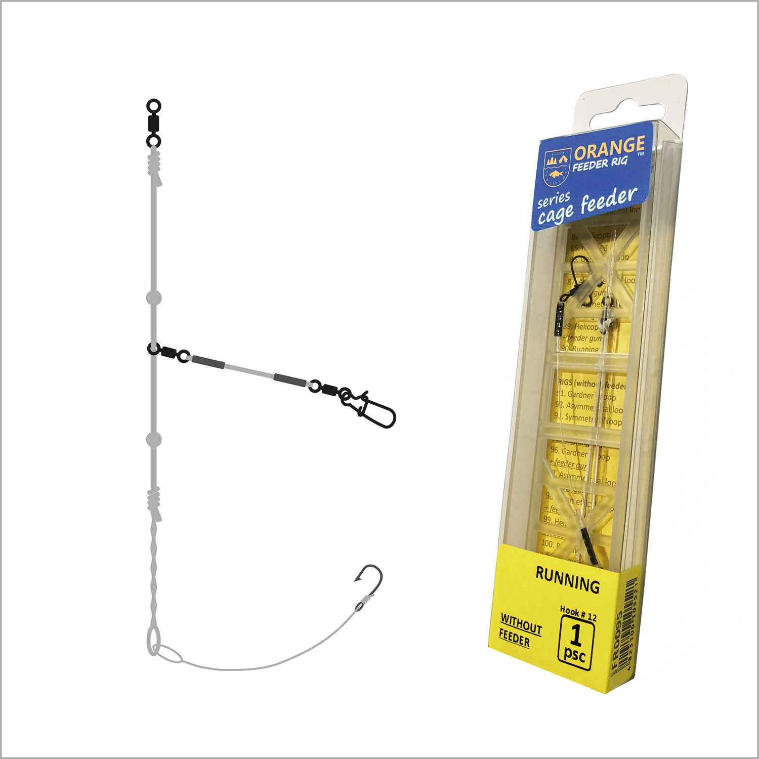 De feeder rig orange.running (zonder voerkorf) is een van de meest populaire rigs voor het vissen op middel en sterke stroming op actieve vissen, in elke waterlaag.