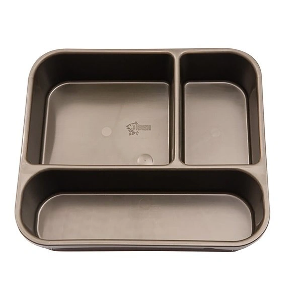 De utility tray kan makkelijk in en uit de emmer gehaald worden en is onderverdeeld in drie vakken om alles op orde te houden en snel te kunnen herbeazen of een nieuwe rig te knopen.