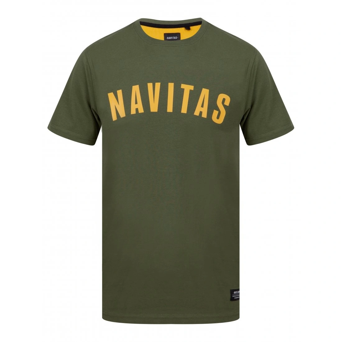 Het navitas sloe tee t-shirt is een stoer groen t-shirt dat is voorzien van het fraaie navitas logo in camouflage print.